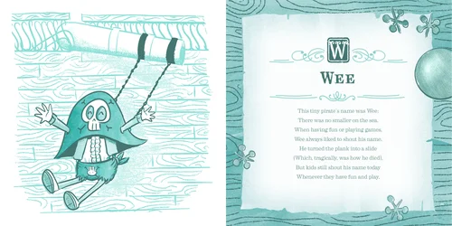 Unfamous Pirates from Arrrrgh! to Z is an unfinished children's book about the most fearsome and fumbling swashbucklers to ever fade into complete obscurity. Their tales of mischief, misadventure, and mismanagement are collected here to amuse and horrify the ages. All ages. I illustrated this book myself and wrote the poems with my wife.